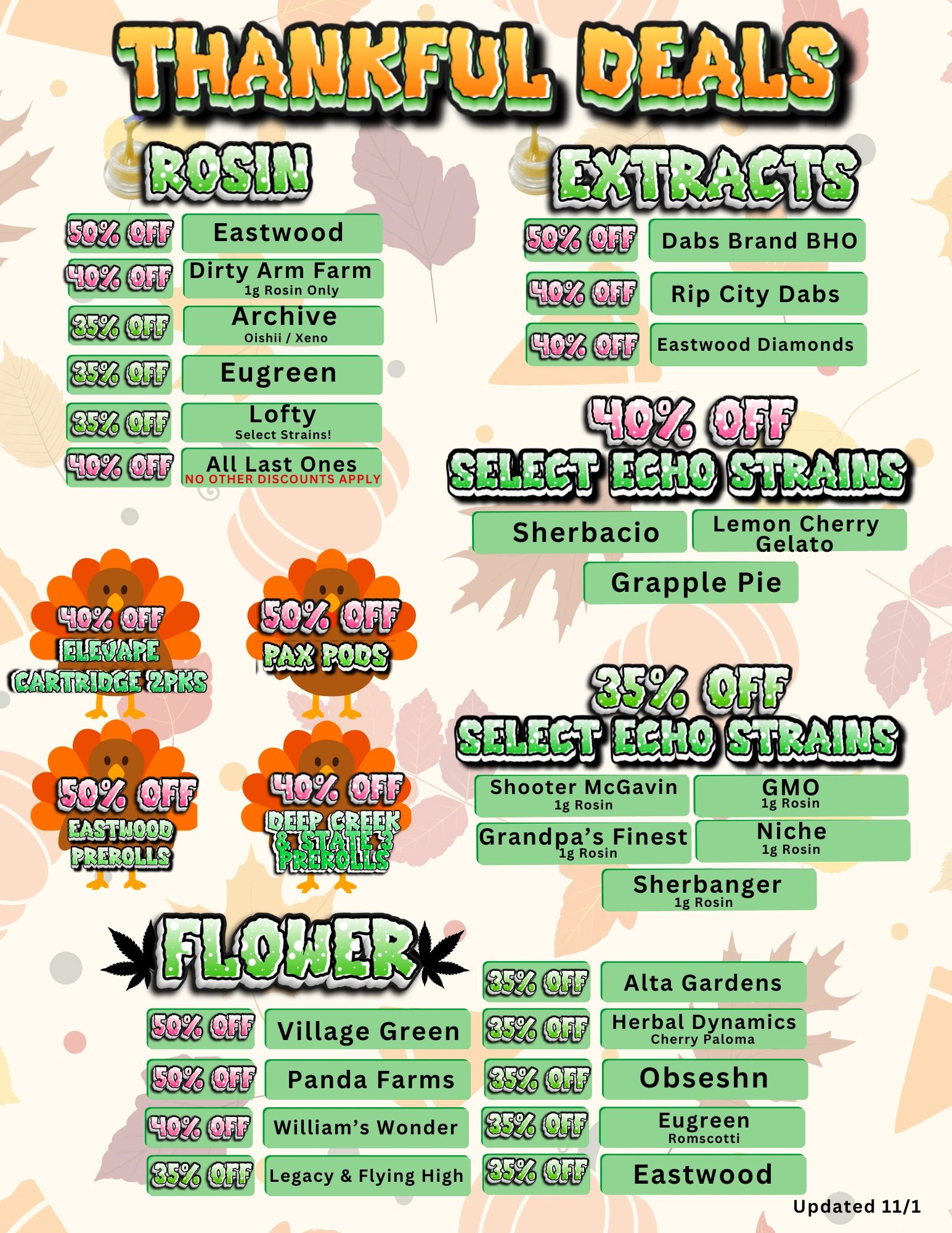 Wednesday & Thursday's for discounts off your order.